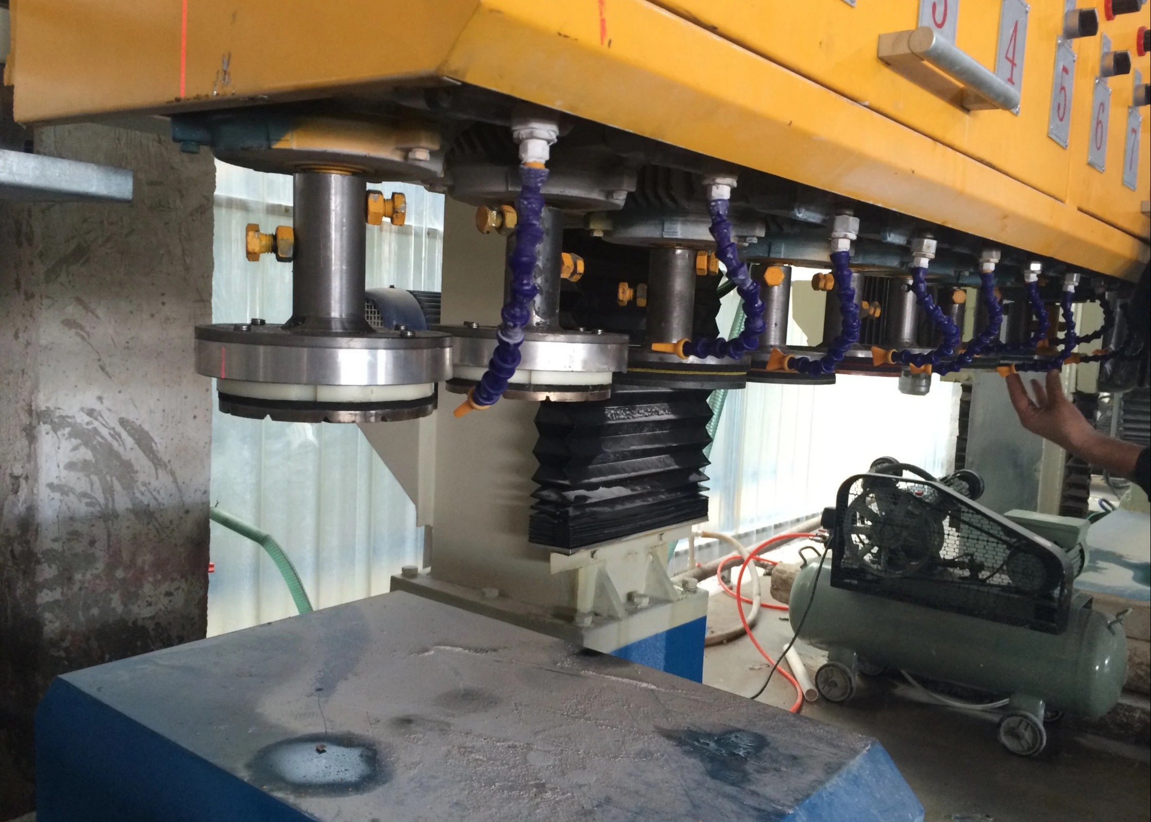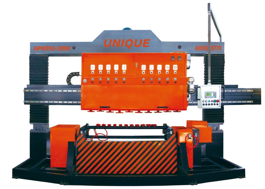 APM350-2000 Arc Slab Polishing Machine memiliki fiksasi vacuum sucker, menggantikan penjepit sisi konvensional.Solusi inovatif ini menghilangkan penyimpangan persegi dan masalah kemiringan yang disebabkan oleh langkah trimming-grinding sementara mencegah kerusakan tepi dan sudut pada lempeng busur.