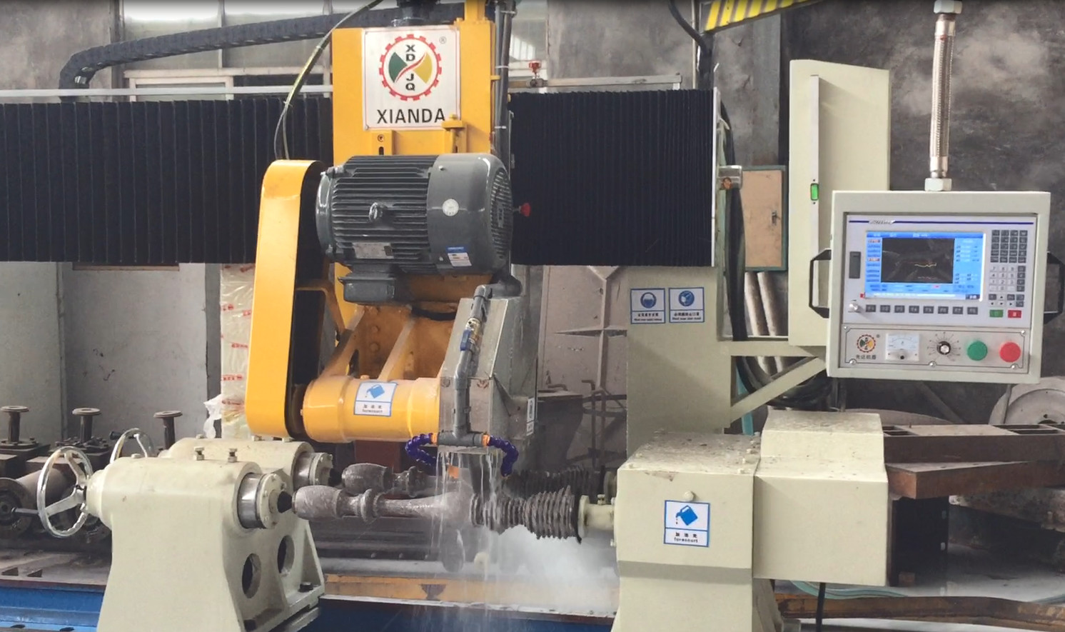 Mesin ini menggunakan kontrol PLC / CNC, tiga inverter, struktur sederhana dan praktis, efisiensi tinggi. Didedikasikan untuk pemrosesan baluster, kingpost, penghalang jalan, dan lainnya.