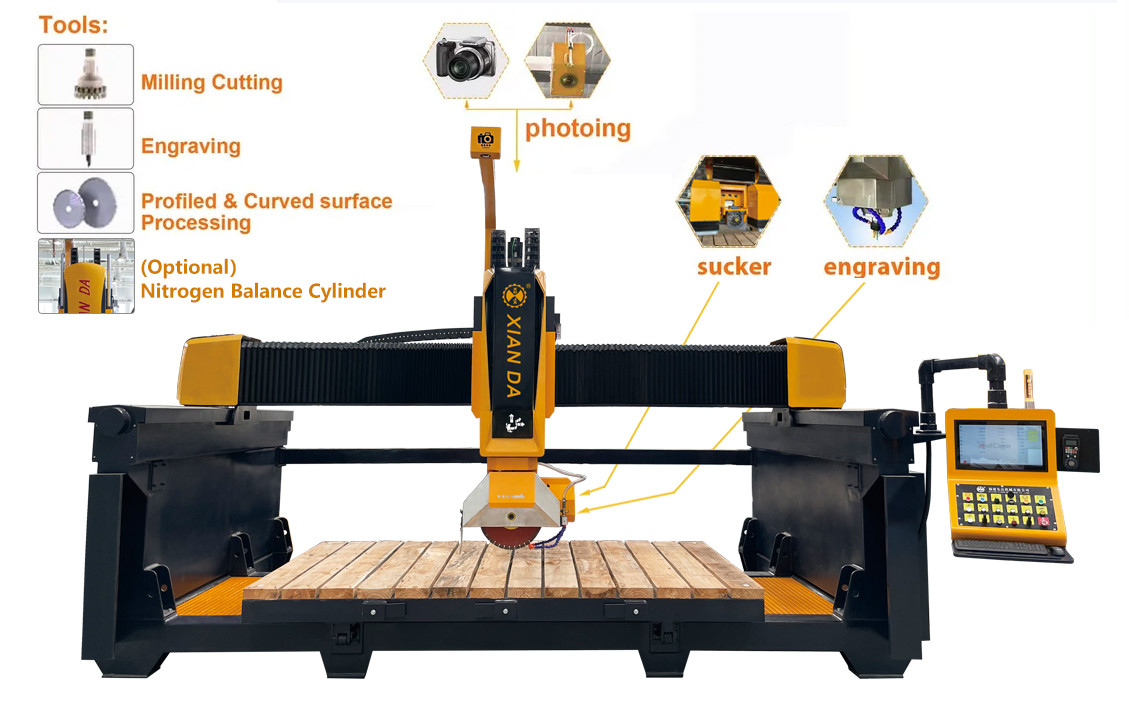 Bridge Saw Cutting Machine adalah alat yang serbaguna dan presisi untuk pengolahan batu, penanganan granit, marmer, dan lempengan besar hingga 3200mm.sementara pisau berlian menjamin pemotongan bersih pada bahan keras. Bergerak listrik untuk kinerja yang konsisten, menggabungkan konstruksi yang kuat, efisiensi, dan akurasi, menjadikannya ideal untuk countertops, ubin, dan proyek kustom.
