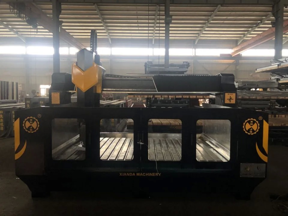 Fujian Xianda ACM-2515-1Q adopts numerical control system with four-axis linkage, double row four-row slider, constant power spindle motor, and two-way tool cooling system. This machine features stable running, high precision, and high efficiency, suitable for processing marble, granite, bluestone, jade, agate, copper plate, and aluminum plate.